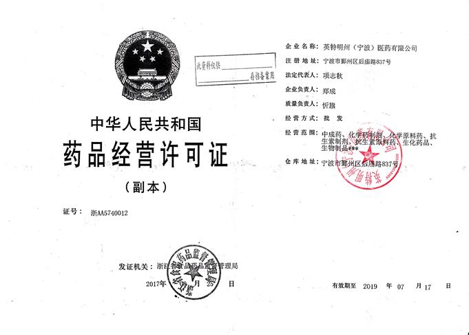 藥品成藥分公司:0574-27788200 27788220 英特明州(寧波)醫(yī)藥有限公司:0574-28831176 28831172
