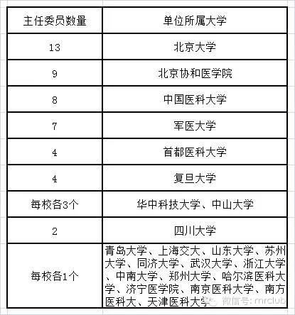 來自于北京大學、北京協和醫學院和中國醫科大學的主任委員數量名列前三。