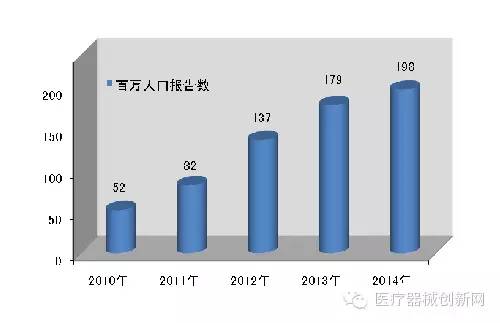 2014年全國醫療器械不良事件監測工作繼續穩步發展,全年報告數已達26萬份,平均百萬人口報告數達198份,較2013年分別增長了11.1%和10.6%,保持著較好的發展態勢;在報告數量持續增長的同時,不良事件報告質量也明顯提升。