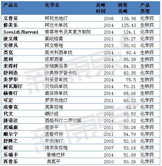年銷售超過50億美元的藥只有它們