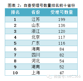 在自查的品種中,江蘇排名第一,199個受理號需要自查;其次是山東136個受理號;浙江排名第三,共120個受理號。