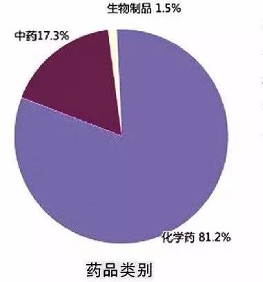 在對2014年藥品不良反應報告進行按涉及藥品類別統計發現,化學藥占81.2%、中藥占17.3%、生物制品占1.5%。抗感染藥報告數量仍居首位,占化學藥的46.2%,較2013年降低了1.4個百分點,報告比例已連續5年呈下降趨勢。心血管系統用藥占化學藥的10.2%,較2013年上升了0.2個百分點,且連續5年呈上升趨勢。