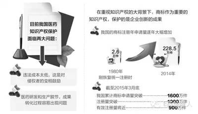 像常州三維這樣的醫藥知識產權的案件并非個例。“醫藥知識產權保護中最大的問題是對侵權人的懲處不夠,讓一些人敢侵權。”常州三維董事長顧書華說。藥品監管法律是對醫藥知識產權保護非常重要的法律體系,它在側重保障藥品質量和用藥安全的同時,能夠更合理地為醫藥領域內的技術創新,尤其是技術轉化創造更多條件。北京務實知識產權發展中心副主任韓元牧表示,對于研發單位而言,由于研發藥品必須找到藥廠拿到生產文號后才能注冊商標、生產上市,藥品研發極容易被生產廠家占為己有,牟取暴利。“藥品是一個特殊商品,首先生產藥品需要有來自知識產權權利人的授權、許可和轉讓;其次企業要有這個能力,藥監部門以核發藥品批準文號的形式認可它的資質。對于藥品監管來講,它的根本目的是對生產能力的認可,而不是生產權利的認定。”原國家食品藥品監督管理局政策法規司司長袁勁屹解釋說。他希望未來可以通過建立上市許可人制度,更好地保障知識產權人的利益。歐美等發達國家的藥品上市許可持有人可以建立自己的生產系統,也可以完全委托其他具備生產條件的生產企業進行生產,這能夠將藥品研發、生產解綁,上市許可和生產許可分離,實際上是對知識產權人的保障。保護不力和懲罰不夠的局面正在改變。中國社會科學院法學研究所研究員李順德介紹說,藥品在專利保護里面是一個很特殊的領域。1984年我國頒布《專利法》,當時并沒有對化學藥品提供專利,1992年修改《專利法》很重要的背景是為了入世。而現在無論是行政還是司法,加大對侵權行為的打擊力度已經成為共識。“比如2013年修改的《商標法》,把懲罰性的賠償寫了進去,原來的民法里面賠償受損害人是遵照填平補齊的,即損失多少補多少,但現在是可以以加倍賠償作為懲罰的。”這也是常州三維能夠獲得巨額賠償的政策背景。現在我國在醫藥知識產權立法上基本達到了國際水平,無論是專利、商標、藥品數據保護、藥品行政保護等,立法都相當健全,保護不足主要在于執法。與我國醫藥工業的快速增長不相適應的是,我國并沒有在這一領域產生很多專利,中國藥學會醫藥知識產權研究專業委員會副主任委員陳兵認為,這與我國一直以來的公有制形式有關。李順德表示,現在我國在醫藥知識產權立法上基本達到了國際水平,無論是專利、商標、藥品數據保護、藥品行政保護等,這些立法都相當健全,保護不足主要在于執法。對于執法難的問題,國家知識產權局知識產權發展研究中心規劃發展處處長謝小勇透露,國家知識產權局正在采取兩方面措施加以解決,第一,在法院判決之外,知識產權行政管理機關還要與工商部門形成聯動,提高執行力;第二,建立侵權黑名單制度。缺乏知識產權意識也是保護不力的重要原因。“知識產權意識包括公眾的意識,包括企業與競爭者之間的相互尊重,尊重他人的知識產權,保護自己的知識產權等。”據國家工商總局商標局審查協作中心副主任原琪介紹,有些侵權比較常見,如新藥的名稱和商標的沖突問題,某新藥一出,同行業的人會一擁而上,把新藥名稱和商標混為一談,作為通用的商標來用。針對這些,修訂后的《商標法》從方便商標申請人、維護公平競爭的市場秩序,加大商標專利權的保護力度,規范商標代理等方面,對商標注冊和管理制度作出比較大的調整。“我覺得2015年是1991、1992年之后形勢最嚴峻的一年。”中國科技戰略發展研究院副院長房漢廷表示,“今年7月,我們加入WTO的15年緩沖期結束了,大部分產品關稅會降到接近于零的水平,國際上的產品會蜂擁而入,再用原來的方式生產和競爭很難體現優勢。同時知識產權的大棒就會在你的頭頂上不斷揮舞,我們有些山寨企業很可能會被知識產權打垮。醫藥企業尤其需要知識產權保駕護航。”“我們從國外‘拿過來’很多的制度,如果沒有相應的政策與之配套,就有可能是不完備的,會產生一些問題,主要表現在權利的分配未必科學,以及對一些權利的認定缺乏依據。”陳兵說。無論是商標法、專利法,還是其他相關法律法規的修改都基于這個背景。企業怎樣才能更好地保護知識產權?房漢廷認為應該采取開發性保護。在“互聯網+”的時代,籌資的成本和信息不對稱正在逐步消除,“草根”投資人完全可以在知識產權開發的初期就參與進來。涉及藥的知識產權應該加速產業化,盡快惠及大眾百姓,這是業內人士的共識。但藥品研發領域一直存在著很大的矛盾——國家投了大量資金研發出成果,卻又無法產業化,一方面嗷嗷待哺,另一方面堆積閑置,中間形成了巨大的鴻溝。如何解決這一矛盾,相關專家表示要盡早建立藥品上市許可人制度,讓藥品研發單位可以真正擁有藥品知識產權的所有權和處置權,通過制度設計保護醫藥創新。同時還建議,通過打造信息、技術等共享平臺,讓醫藥研發成果能夠和市場充分對接,快速實現產業化。在增強執法力度層面,要建立藥品專利保護的聯動機制。據了解,北京、上海、廣州都已于去年底成立了知識產權法院,以完善知識產權司法保護機制,更有力地保護包括生物醫藥產業在內的知識產權。