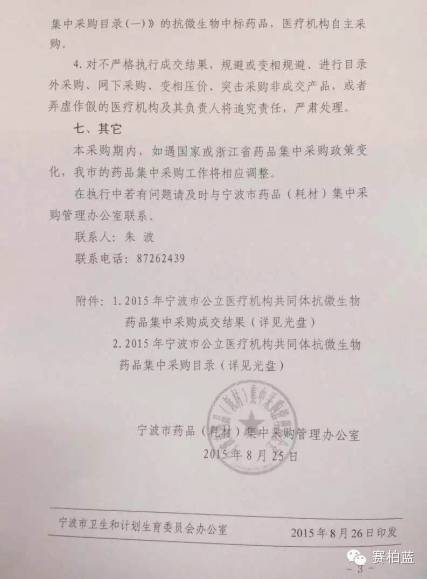 昨日,有業(yè)內(nèi)微友向賽柏藍(lán)透露,寧波的抗微生物藥品的二次議價(jià)結(jié)果在8月26日已正式印發(fā)。