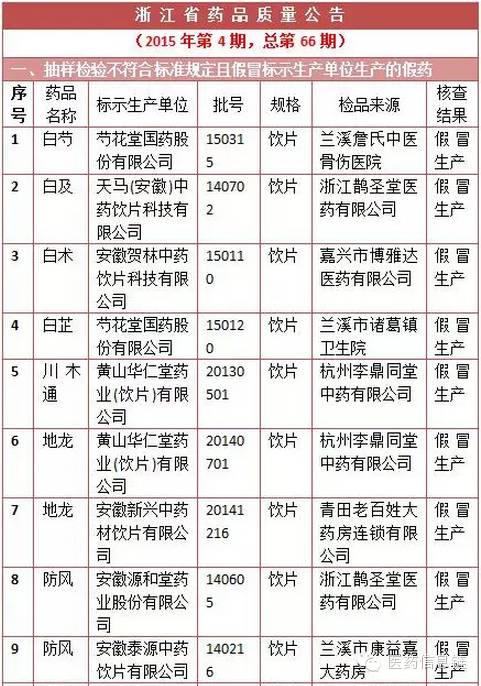 日前,浙江省藥監局發布2015年第4期藥品質量公告,其中87批次藥品不合格,其中中藥飲片為重災區。