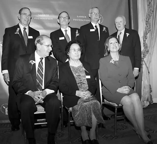 ▲圖為屠呦呦(前排中)與2011年拉斯克獎評委和獲獎人員合影