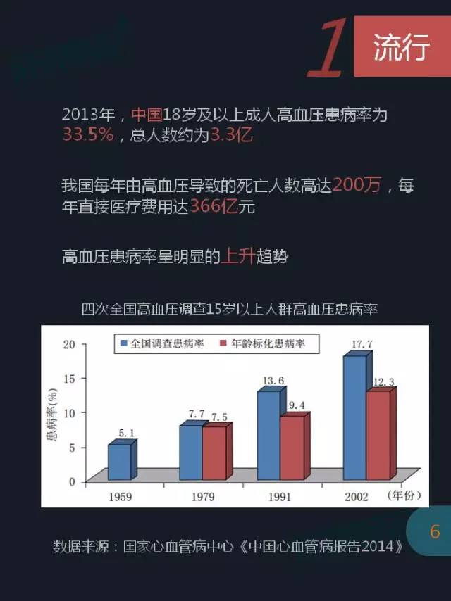 1、流行:我國成人中1/3患有高血壓,總數(shù)約3.3億