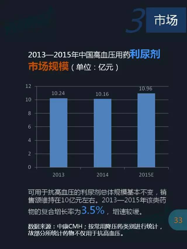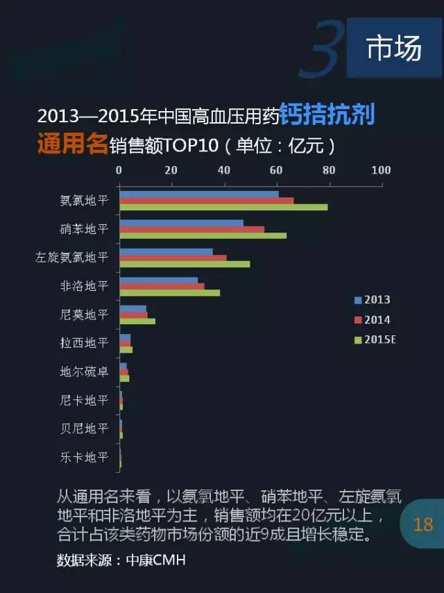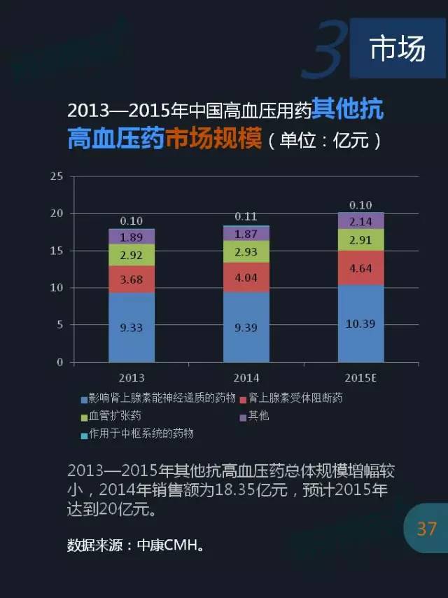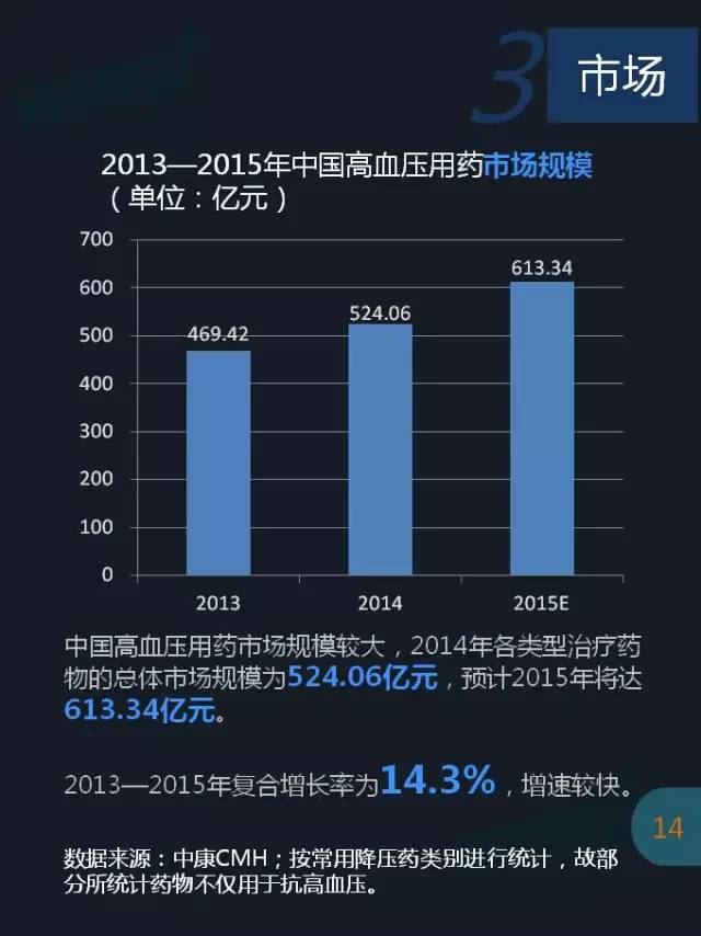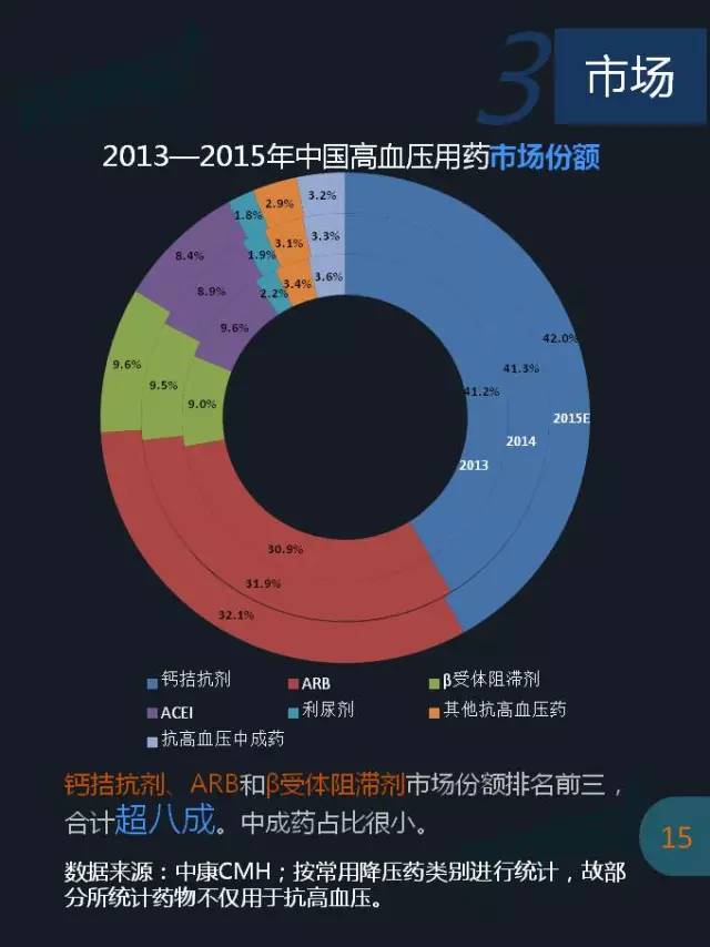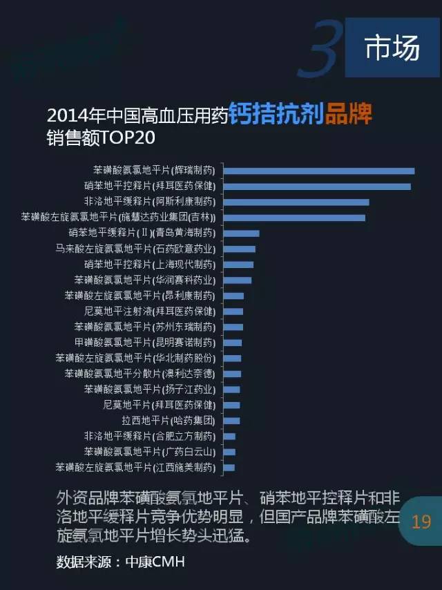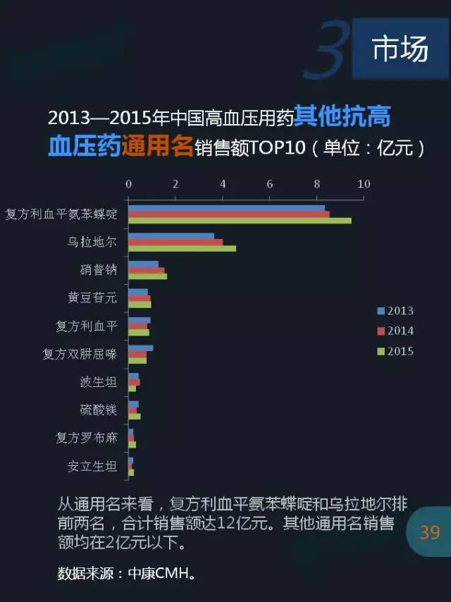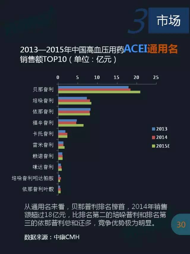 其中在第三部分市場中,可以了解到2013-2015年高血壓用藥鈣拮抗劑、ACEI、ARB、利尿劑、其他抗高血壓藥等通用名銷售額TOP10,2014年中國高血壓用藥鈣拮抗劑、ACEI、ARB、利尿劑、其他抗高血壓藥等品牌/企業(yè)銷售額TOP20
