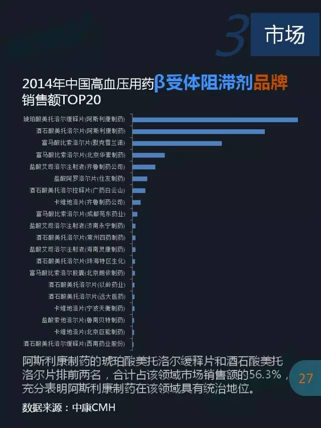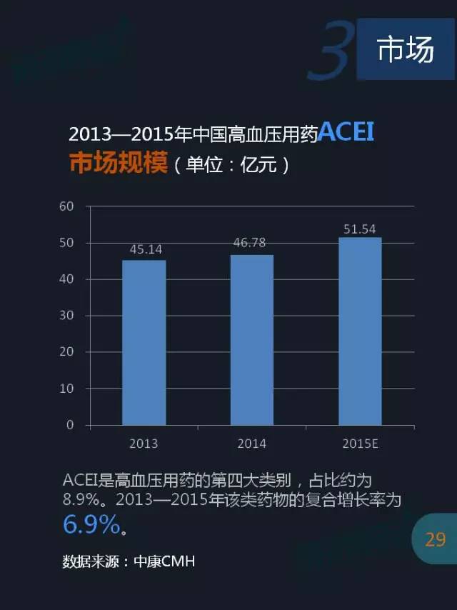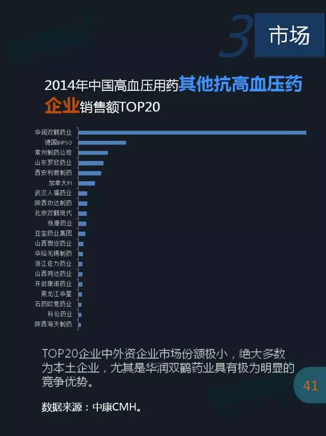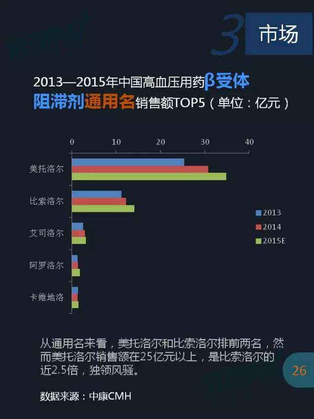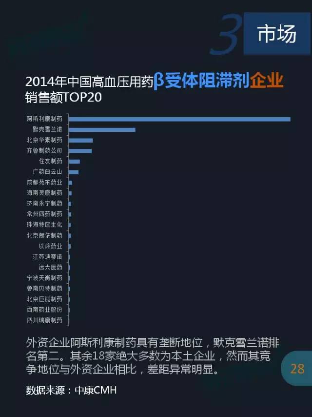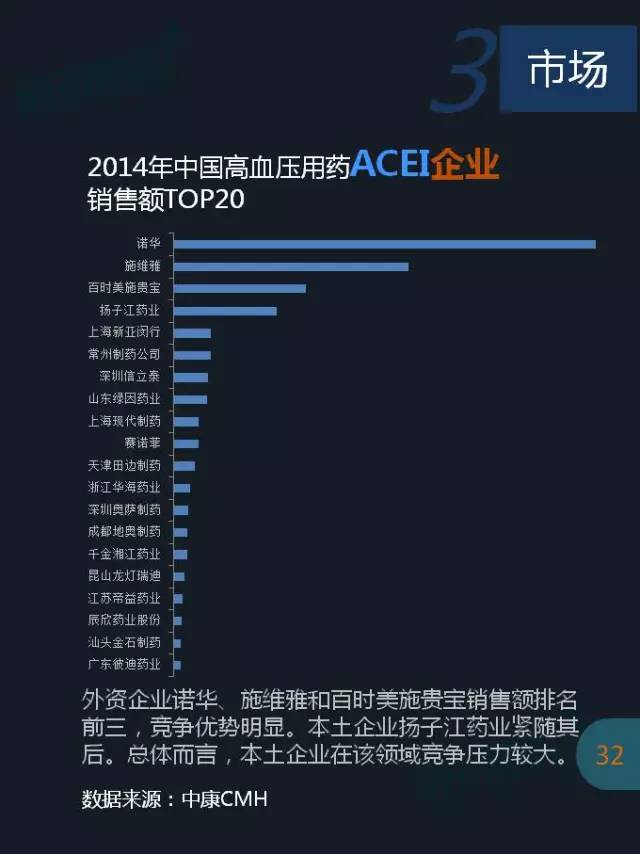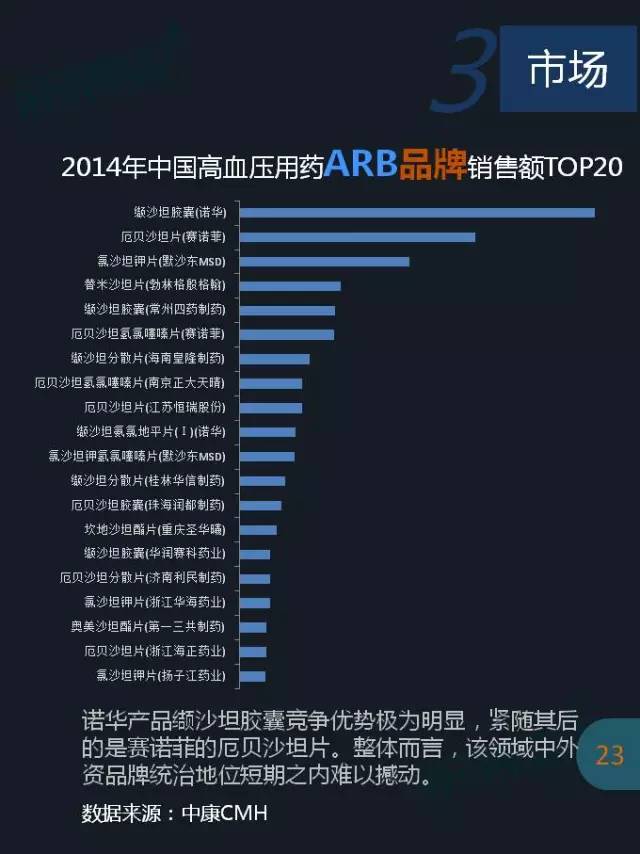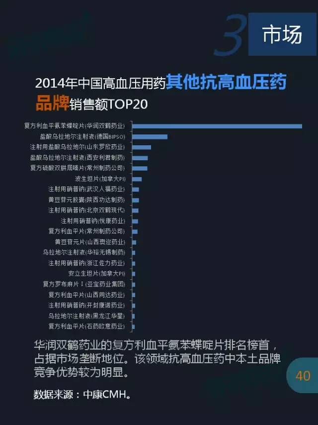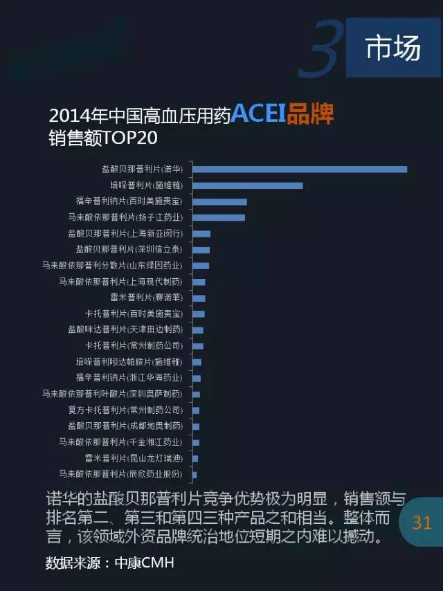 其中在第三部分市場中,可以了解到2013-2015年高血壓用藥鈣拮抗劑、ACEI、ARB、利尿劑、其他抗高血壓藥等通用名銷售額TOP10,2014年中國高血壓用藥鈣拮抗劑、ACEI、ARB、利尿劑、其他抗高血壓藥等品牌/企業(yè)銷售額TOP20