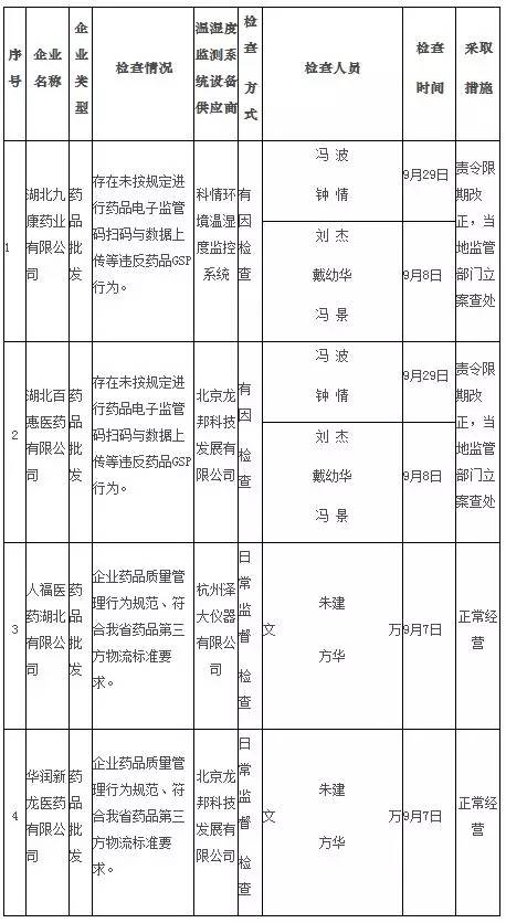 同時,湖北省藥監(jiān)局對人福醫(yī)藥湖北有限公司、華潤新龍醫(yī)藥2家藥品批發(fā)企業(yè)進(jìn)行日常監(jiān)督檢查,上述2家企業(yè)藥品質(zhì)量管理行為規(guī)范、符合該省藥品第三方物流標(biāo)準(zhǔn)要求,正常經(jīng)營。