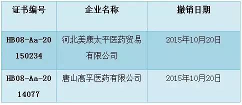 同日,河北省藥監(jiān)局發(fā)布關(guān)于撤銷GSP認(rèn)證證書公告,依法撤銷2家企業(yè)的GSP證書。