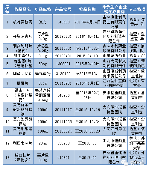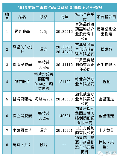 黑龍江省藥監局發布2015年第2期黑龍江省藥品質量公告(總第34期),將2015年第二、三季度藥品質量抽驗情況公告如下: