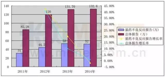 表2:2011年-2014年國家基藥不良反應報告情況
