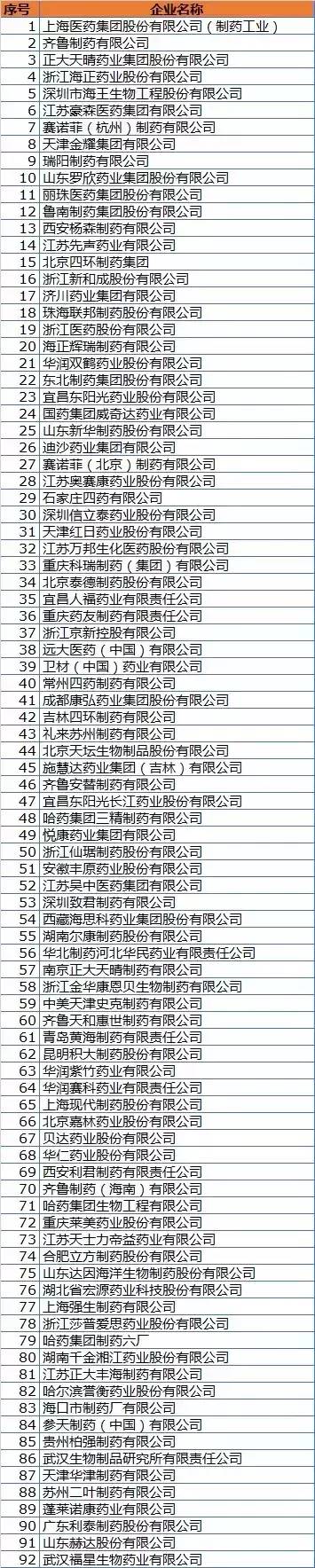 2015中國制藥企業綜合實力百強名單