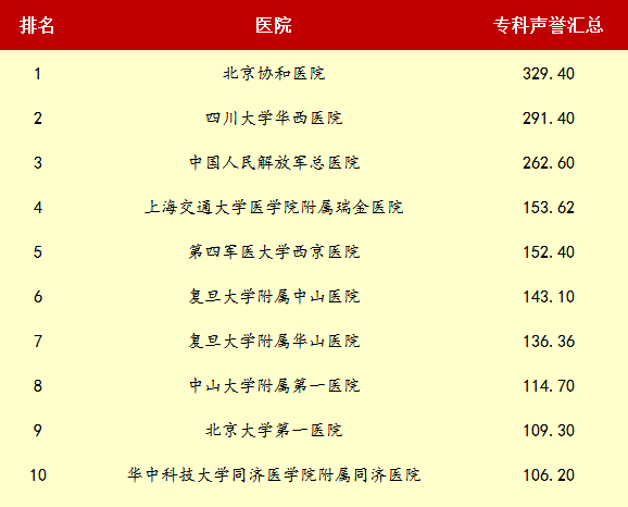 20144年度最佳醫院排行榜(全國專科匯總)