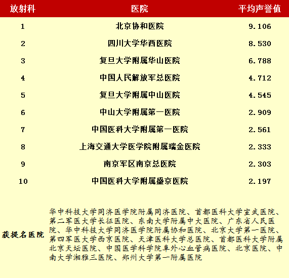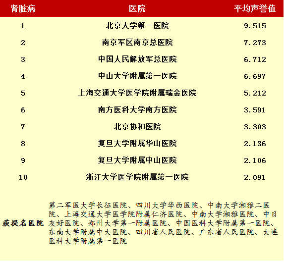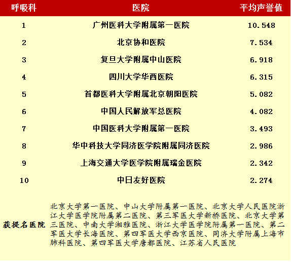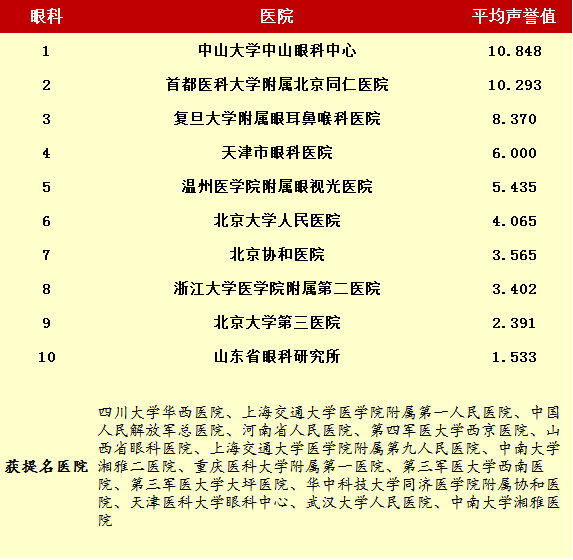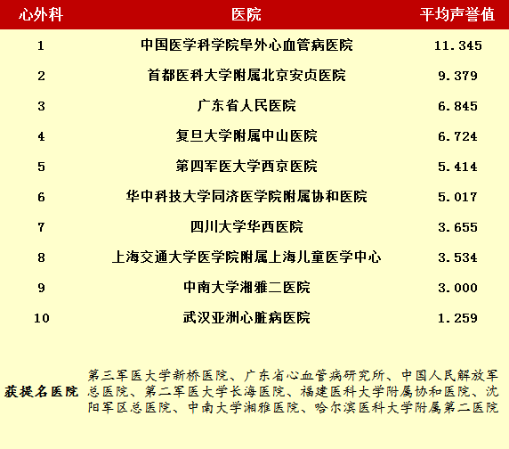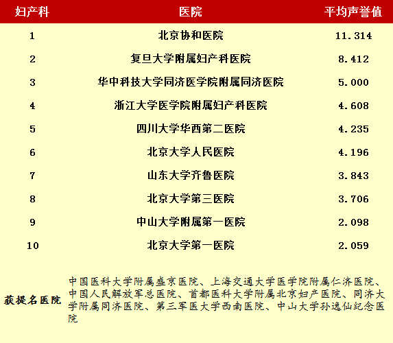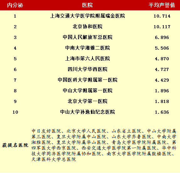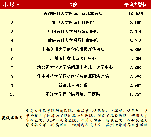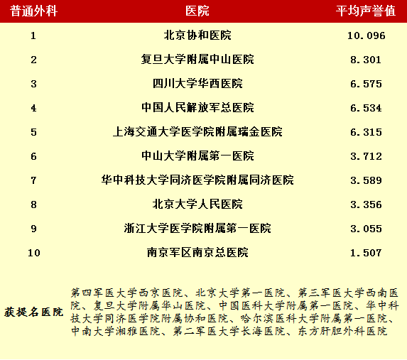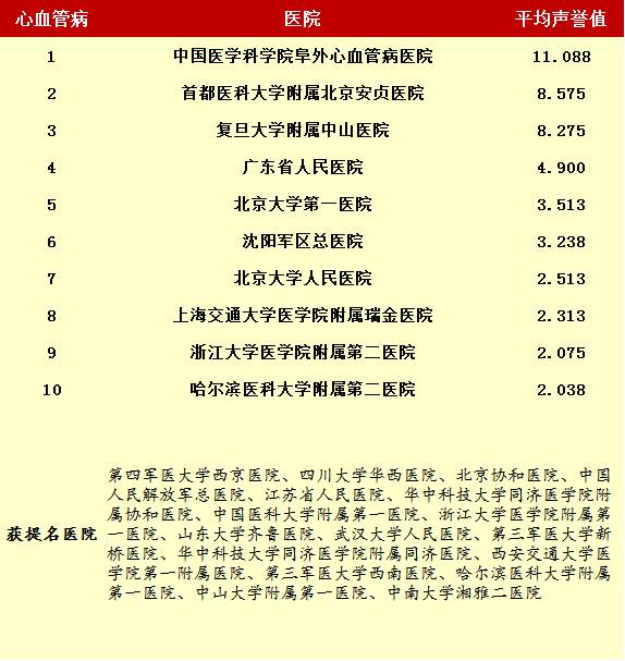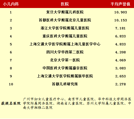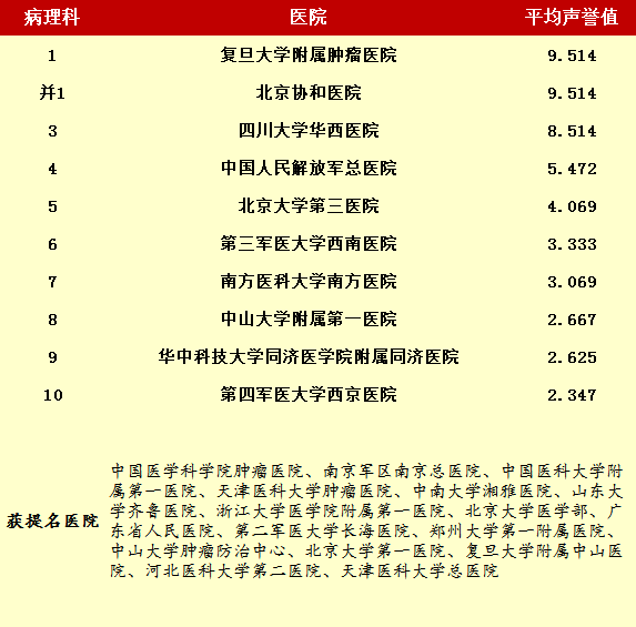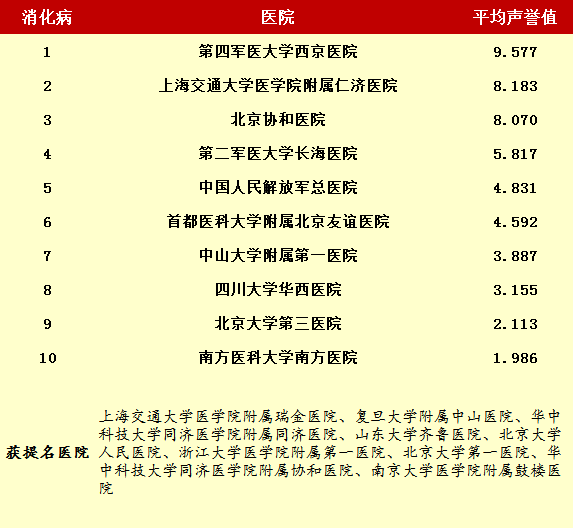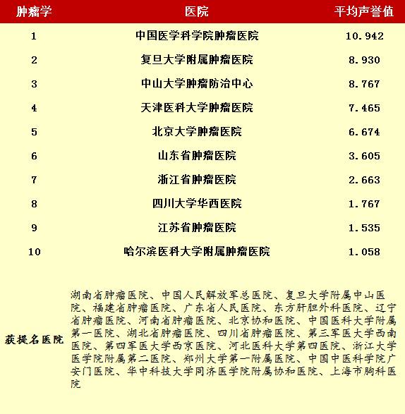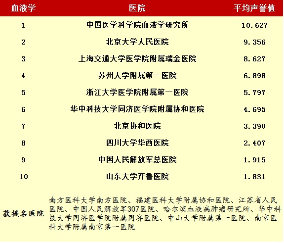 2014年度最佳醫院排行榜(部分專科匯總)