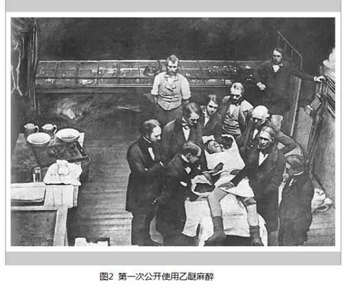 一直到1846年,千呼萬喚始出來啊!終于有人開始反思,站在時代的前沿提出建設性的意見——麻醉!在這外科歷史上轉折性的一年,Henry Jacob Bigelow記載了乙醚吸入麻醉在外科手術中的作用(圖2),有了這個利器,外科手術方式開始革新。因為病人被乙醚麻醉后失去了痛覺,有利于外科醫生井井有條的處理手術過程。有意思的地方是,乙醚的使用還涉及到一個公案——實際上首先在外科手術中使用乙醚麻醉的是一個叫做William Morton的牙醫,但是他將把這個方法私藏起來,不愿意和同行分享,而Bigelow未得到他的同意將他的方法(準確的說是Morton的發現)公布出來。