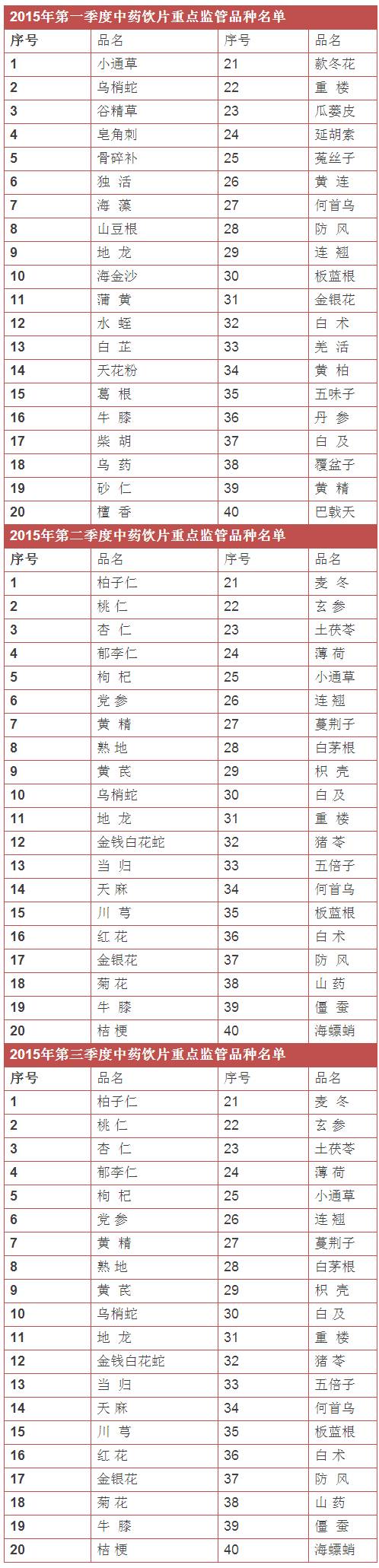 下面為甘肅省第一、二、三季度重點監(jiān)管中藥飲片