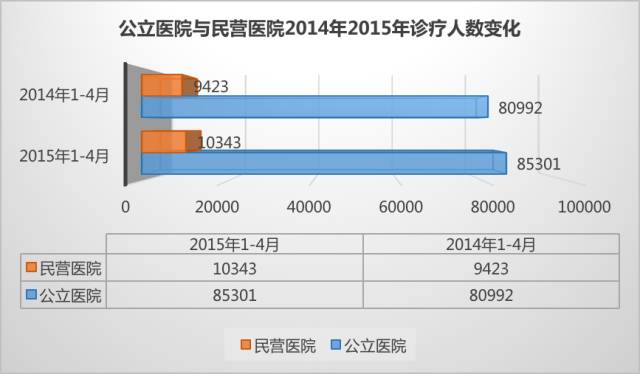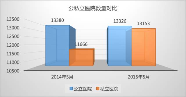 從衛(wèi)計委發(fā)布的數(shù)據(jù)可以看出,截止到2015年5月,民營醫(yī)院的數(shù)量“突飛猛進”,在短短的一年時間內(nèi)增長了1487家。目前,從醫(yī)院數(shù)量的角度看,民營醫(yī)院已經(jīng)和公立醫(yī)院“平起平坐”。