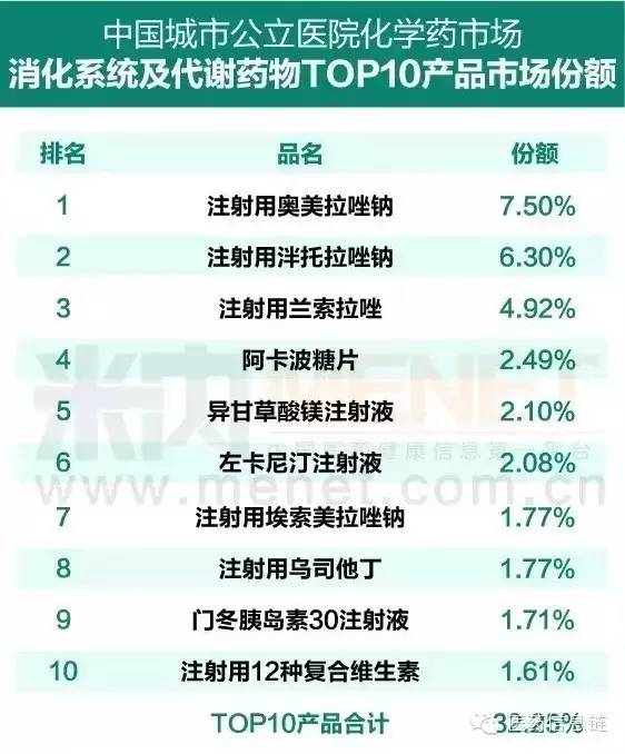 杭州中美華東制藥有限公司的阿卡波糖咀嚼片、山東羅欣藥業集團股份有限公司的羅紅霉素氨溴索片、成都倍特藥業的氟哌噻噸美利曲辛膠囊、廈門恩成制藥有限公司的奧美拉唑碳酸氫鈉膠囊等16個品種為獨家劑型。其中阿卡波糖和奧美拉唑鈉都是消化用藥的大品種,據CFDA南方醫藥經濟研究所發布的《2015年度中國醫藥市場發展藍皮書》數據,注射用奧美拉唑鈉占據城市公立醫院消化及代謝藥物7.5%的市場份額,阿卡波糖片的市場份額也達到了2.49%.