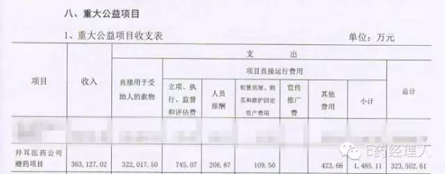 在E藥經理人關于退出原因的調查中,也有部分受訪者認為,拜耳公司決定退出萬他維還跟中華慈善總會收取的項目管理費過高有關。一位不愿具名的患者組織負責人透露,參與援助項目的企業每年至少要交100萬元的項目管理費。