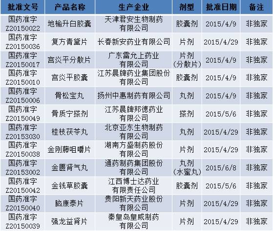 值得關注!2015年CFDA批準中藥品種(含15個獨家)