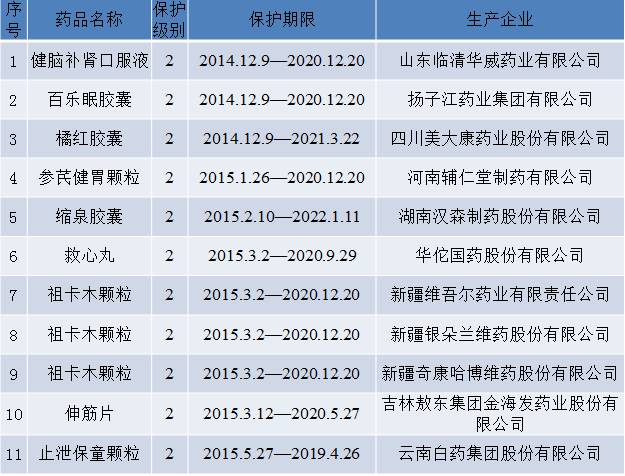 2015年中藥延長(zhǎng)保護(hù)期品種