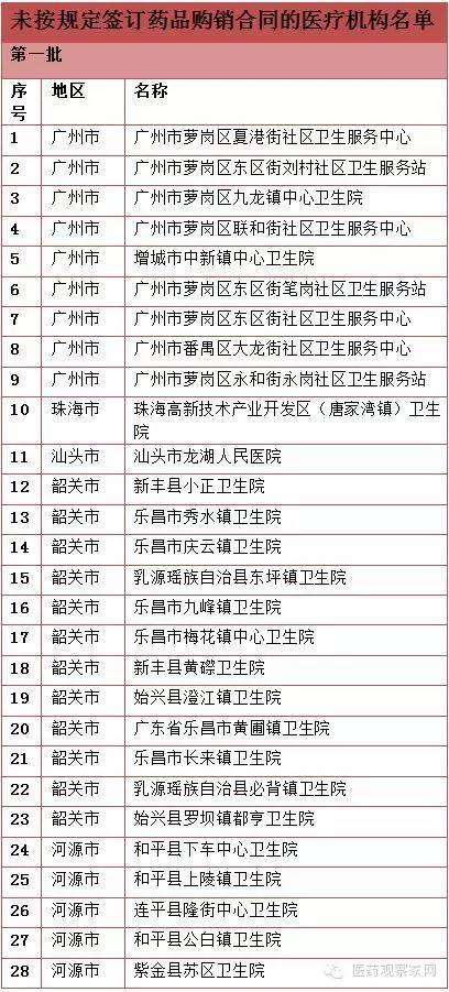 在我省201502-05輪基本藥物和非基本藥物醫保競價交易中,部分醫療機構和生產企業存在未按規定簽訂藥品購銷合同的行為,違反了《廣東省醫療機構藥品交易監督管理辦法(試行)》相關規定。經省藥品交易中心網站公示、省藥品交易制度改革專責工作小組研究,現依據《辦法》第十一條第二項、第十三條第三項和《關于廣東省醫療機構藥品非誠信交易名單的管理辦法》第六條、第七條規定,對違規機構做出如下處理:廣州市戒毒管理局醫院、廣州市蘿崗區聯和街暹崗社區衛生服務站兩家醫療機構列入“廣東省藥品非誠信交易名單”。請各有關地市級衛生計生局(委)按干部管理權限(或會同任免機關)對醫療機構主要負責人進行誡勉談話,責令其糾正,追究單位和責任人的責任,并于自本通知公布之日起一個月內將《對醫療機構不簽訂藥品購銷合同誡勉談話登記表》報告我委。