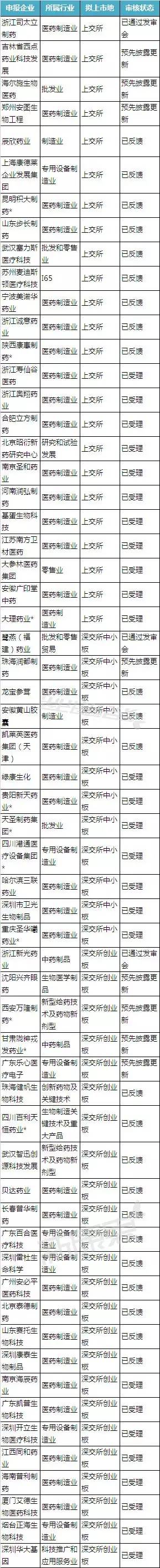 截至2015年12月17日,中國證監會受理首發企業718家,其中,已過會67家,未過會651家。未過會企業中正常待審企業633家,中止審查企業18家。其中,不完全統計,目前有60家醫藥企業仍在排隊IPO。