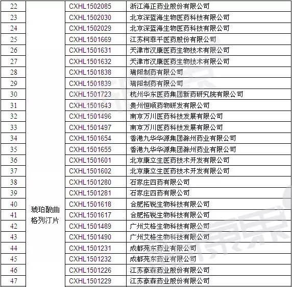 如前文所述,我國現有1.1億糖尿病患者,且患病率呈逐年增高趨勢。DPP-Ⅳ因療效確切,安全性和耐受性良好已成為口服降糖藥中的佼佼者,并已幾乎占領全球降糖藥市場的1/3。長效DPP-Ⅳ抑制劑因每周僅需給藥一次而提高患者給藥的簡便性和依從性更是受到醫學界的高度關注。曲格列汀首獲上市不到一年的時間,國內已有多家企業搶仿。迄今為止,我國CFDA已受理來自不同企業的21個原料藥和39個片劑的注冊申請(詳細信息見表4),預計后續還會有企業提出有關本品的注冊申請。