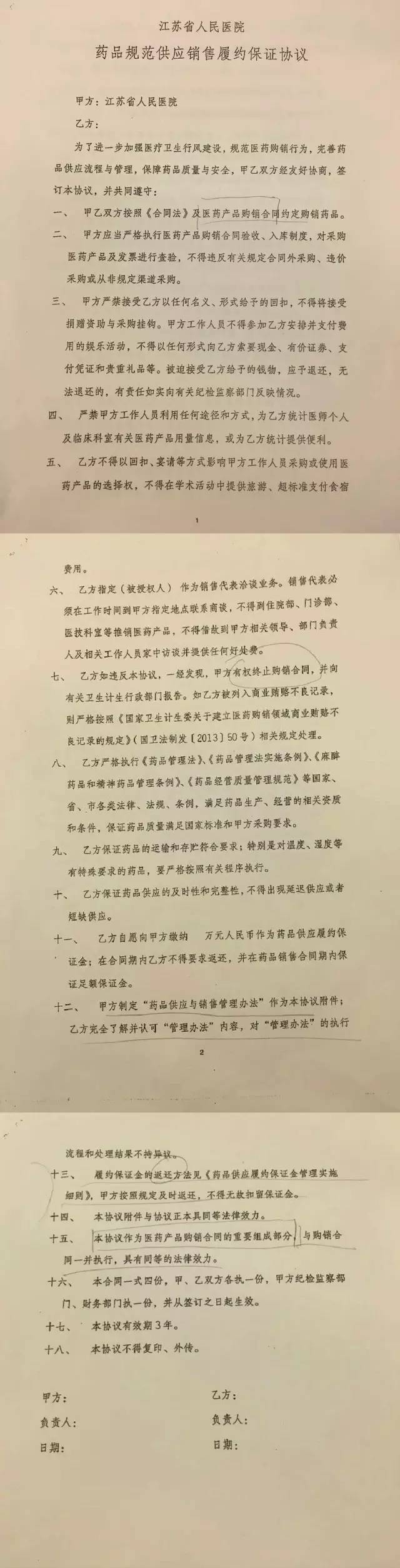 江蘇省人民醫院征繳保證金的消息一出,最大的爭議點就是醫院征繳保證金的目的。根據江蘇省人民醫院“藥品規范供應銷售履約保證協議”,該院設立保證金是為了進一步加強醫療衛生行風建設,規范醫藥購銷行為,完善藥品供應流程與管理,保障藥品質量與安全。