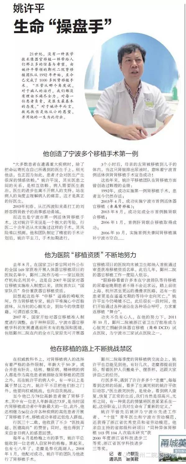 我院首任院長(zhǎng)、正院級(jí)調(diào)研員姚許平教授作為鄞州衛(wèi)生系統(tǒng)唯一代表,與其他9位來(lái)自全市各大醫(yī)院的代表共獲“衛(wèi)生名醫(yī)獎(jiǎng)”。