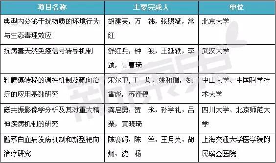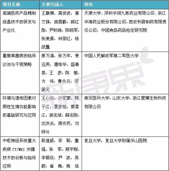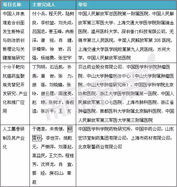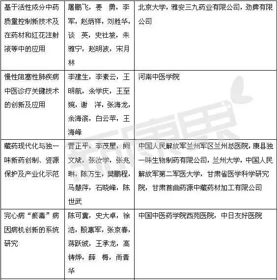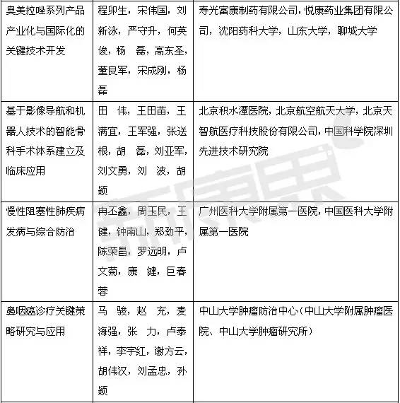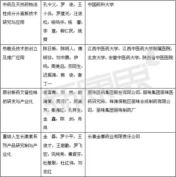其中,醫藥領域的項目共39個:國家自然科學獎項二等獎5個;國家技術發明獎二等獎3個;國家科學技術進步獎一等獎3個,創新團隊1個,二等獎27個。