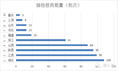 各省藥監(jiān)部門共查獲中藥材、中藥飲片、制劑509個(gè)品規(guī)、批次,涉及品種130個(gè),其中中藥材中藥飲片488批次,中成藥12個(gè)占所有樣品的97.0%, 哎,又中標(biāo)了,重災(zāi)區(qū)還是中藥、中藥材詳見附件1。各省情況又差異很大,共有10個(gè)省、市抽檢查出假冒標(biāo)示生產(chǎn)單位的假藥,最多的是湖北省共查出108個(gè),其次是江西99個(gè)批次,見下圖:
