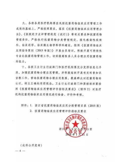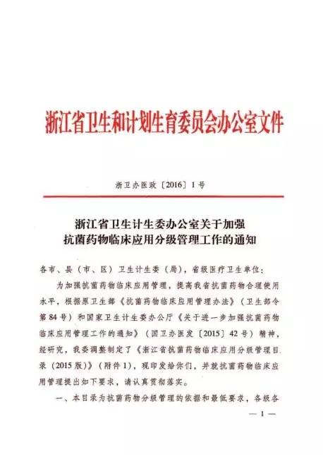 浙江省衛生計生委辦公室關于加強抗菌藥物臨床應用分級管工作工作通知-浙衛辦醫政[2016]1號文件
