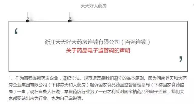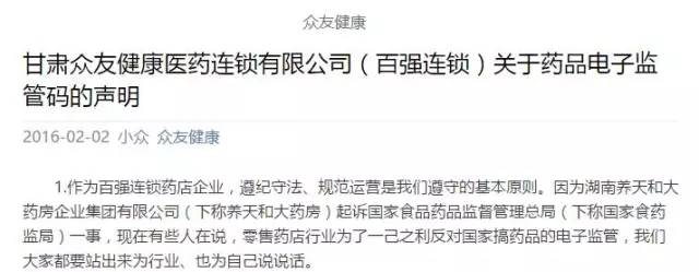 今天,多家百強藥店連鎖發生罕見的集體刷屏,各家的官方微信號陸續發出內容相同或類似的反對電子監管碼的聲明:(包括但不限于以下連鎖藥房)