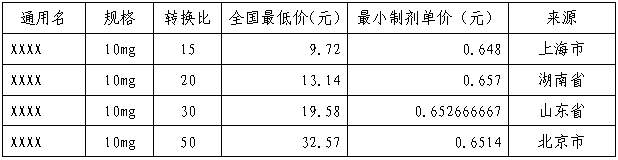 1.申報全國最低在線交易價格時,若同一規格有多個轉換比中標的,按最小制劑單價的全國最低價乘以相應轉換比進行換算,如:
