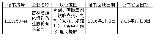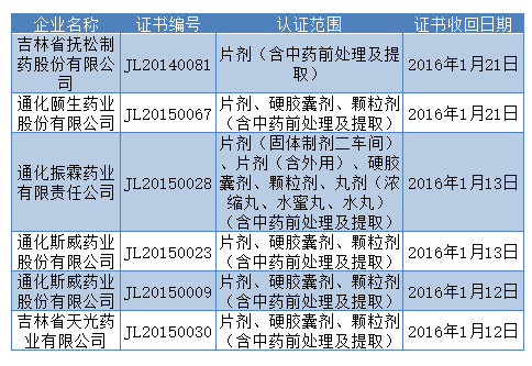 近日,吉林省食品藥品監(jiān)督管理局網(wǎng)站連續(xù)發(fā)布收回GMP證書公告,共有6藥企被收回GMP證書。