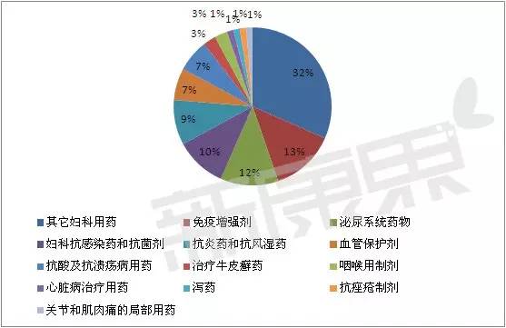 此外,婦科抗感染藥和抗菌劑和抗炎藥和抗風濕藥也分別有8個、7個。