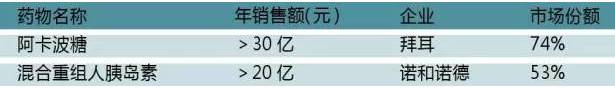 阿卡波糖是拜耳的產品,屬α-葡萄糖苷酶抑制劑,在歐美市場反應一般,但在中國市場空前成功,連續多年排名國內糖尿病市場第一名,其原因可能與飲食習慣有關。有研究發現阿卡波糖主要降低餐后高血糖,如果使用者飲食中碳水化合物占50%以上,則降糖效果更為明顯,因此阿卡波糖適用于以碳水化合物為主食的人群。市場以拜耳占優勢已經多年,國內有杭州中美華東及四川綠葉寶光生產片劑、咀嚼片和膠囊。