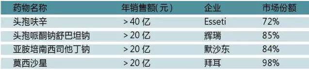 亞胺培南西司他丁鈉屬于碳青霉烯類抗生素,它是硫霉素脒基類衍生物與腎脫氧肽酶抑制劑組合成的復方制劑,兩者協同增效可殺滅大多數常見的革蘭陽性和革蘭陰性的需氧及厭氧病原菌。默沙東的產品“泰能”曾經挽救了無數患者的生命,雖說其在美國專利2009年9月到期后全球市場有所下滑,但國內的銷售受專利到期的影響較小。
