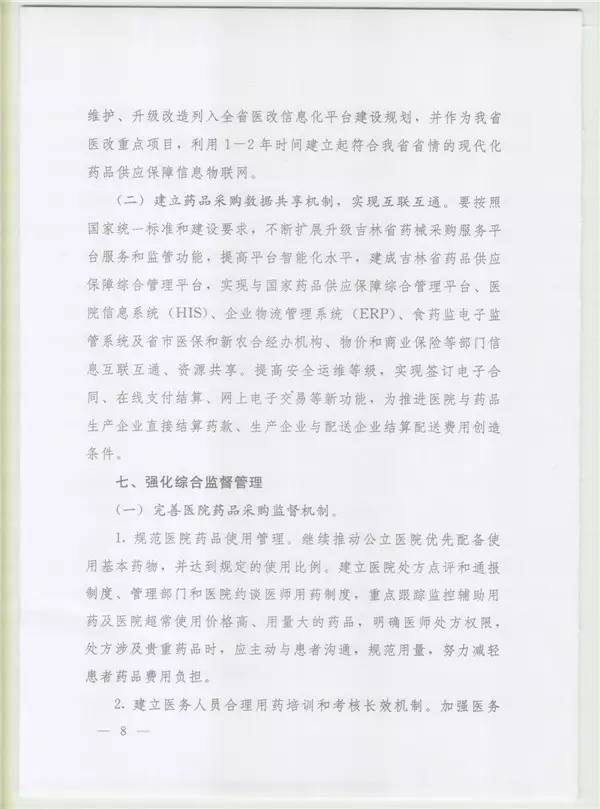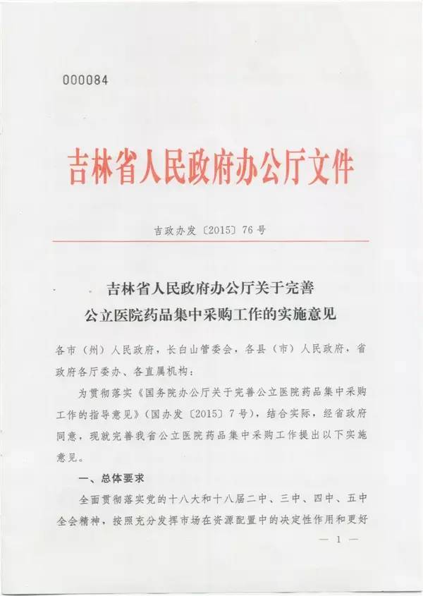 吉林關于完善公立醫院藥品集中采購工作的實施意見
