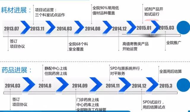2013年7月,上藥控股與上海市第一人民醫(yī)院松江南院首次簽訂供應(yīng)鏈項(xiàng)目合作協(xié)議,同年11月,在南院3個(gè)科室試點(diǎn)耗材運(yùn)作,2014年3月上藥控股與市一南院簽訂藥品供應(yīng)鏈協(xié)議。經(jīng)過(guò)在市一南院的成功運(yùn)營(yíng),2015年1月上藥控股在市一北院?jiǎn)?dòng)耗材供應(yīng)鏈項(xiàng)目,7月起藥品也加入了統(tǒng)一管理的范疇。