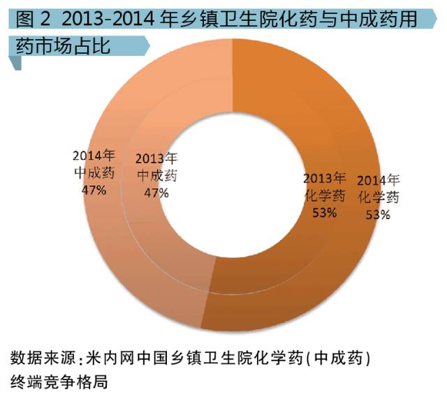 與城市及縣級公立醫院明顯不同的是,中成藥在基層醫療機構的使用比例更高,特別是鄉鎮衛生院醫療終端。城市公立醫院與縣級公立醫院的中成藥使用比例只有二至三成,而鄉鎮衛生院接近五成。