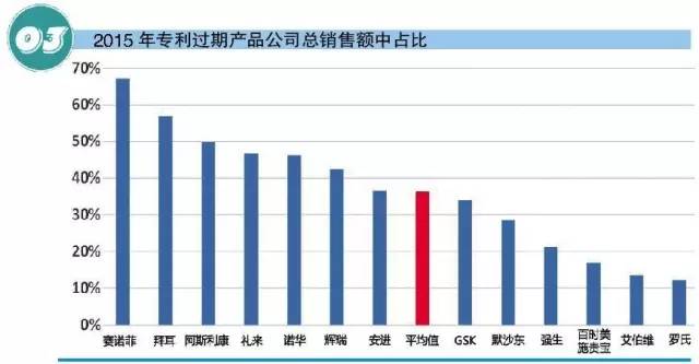 當下,制藥巨頭的低研發回報率促使其不得不從傳統業務獲取更多利益,而傳統業務延續利潤創收的可行模式探求重任需要藥企面對。圖3展現了2015年13家制藥企業過期專利藥的銷售情況。