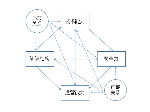 保持與塑造醫(yī)院的成長(zhǎng)力,需要提高和增強(qiáng)以下六個(gè)方面:知識(shí)結(jié)構(gòu)、技術(shù)能力、變革力、運(yùn)營(yíng)能力、內(nèi)部關(guān)系、外部關(guān)系,這六大指標(biāo)又構(gòu)成了相互驅(qū)動(dòng)的因果關(guān)系,我們可以用醫(yī)院“成長(zhǎng)力鉆石模型”(圖1)來具體描述醫(yī)院的成長(zhǎng)潛力和競(jìng)爭(zhēng)能力。