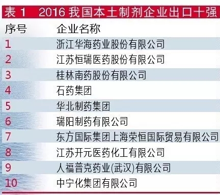 【亮點(diǎn)】2016西藥制劑出口美國(guó)增長(zhǎng)41.7%:本土企業(yè)為主力,華海領(lǐng)銜十強(qiáng)