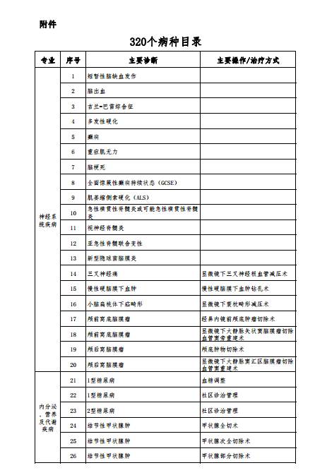 2017年1月10日,三部委發(fā)布《關(guān)于推進按病種收費工作的通知》,除了要求“各地二級及以上公立醫(yī)院都要選取一定數(shù)量的病種實施按病種收費,城市公立醫(yī)院綜合改革試點地區(qū)2017年底前實行按病種收費的病種不少于100個”之外,還公布了320個按病種收費病種(名單附后)。