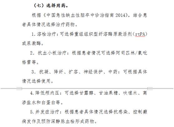 這320個病種中,以“腦梗死”為例,根據(jù)中華醫(yī)學(xué)會組織制定的“腦梗死臨床路徑”,“選擇用藥”一項明確包括重組組織型纖溶酶原激活劑(rtPA)、尿激酶、阿司匹林、氯吡格雷、甘露醇、甘油果糖、呋噻米、高滲鹽水和白蛋白等品種,而這些品種的遴選依據(jù),則是《中國急性缺血性腦卒中診治指南2014》。