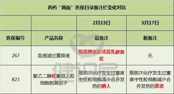 附:2.23版與3.17醫(yī)保目錄備注欄變化的對比表(西藥部分)